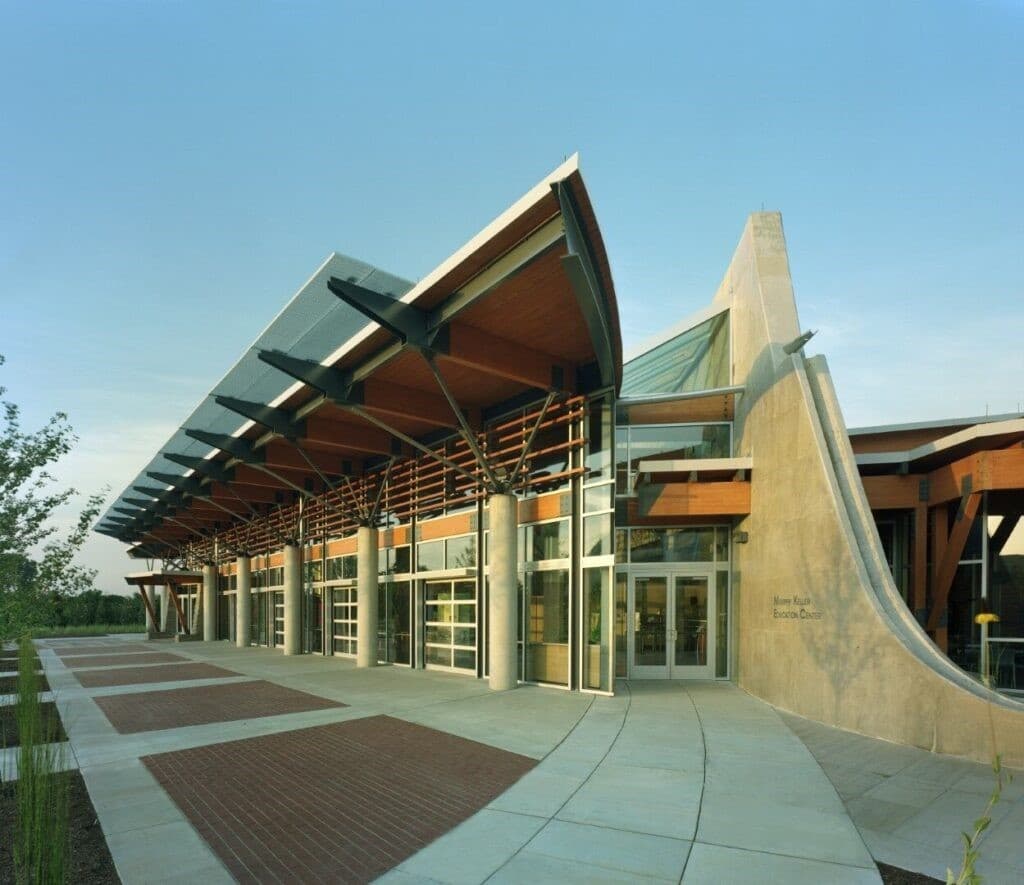 Le Murphy Keller Education Center de Heifer International est un projet ambitieux conçu pour montrer l’engagement de Heifer envers la durabilité. Le bâtiment maximise la lumière du soleil, conserve l’eau de pluie et l’énergie, réduit les émissions polluantes et permet de sensibiliser le public aux problèmes de durabilité. Kawneer est fière de participer à ce projet qui met en valeur nos murs-rideaux, nos systèmes de cadre, nos entrées standard et nos pare-soleil personnalisés.