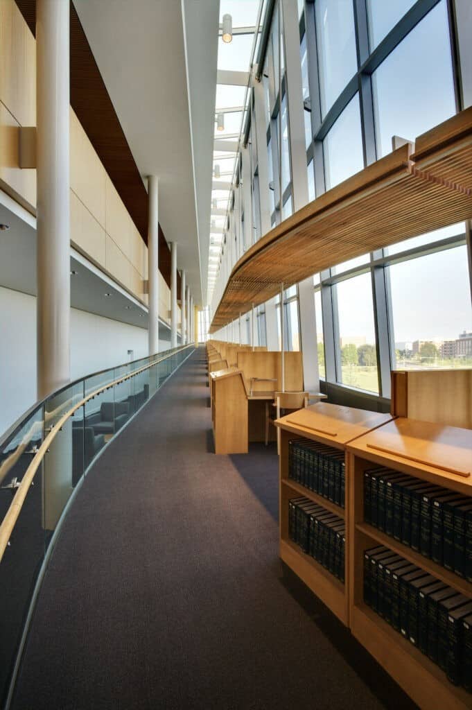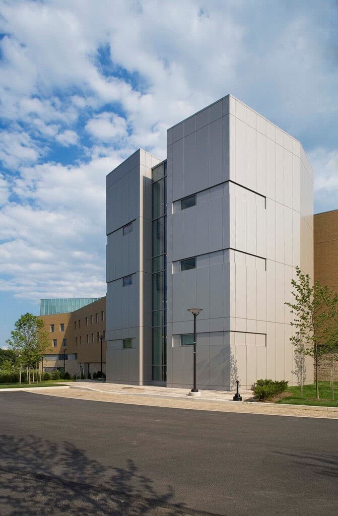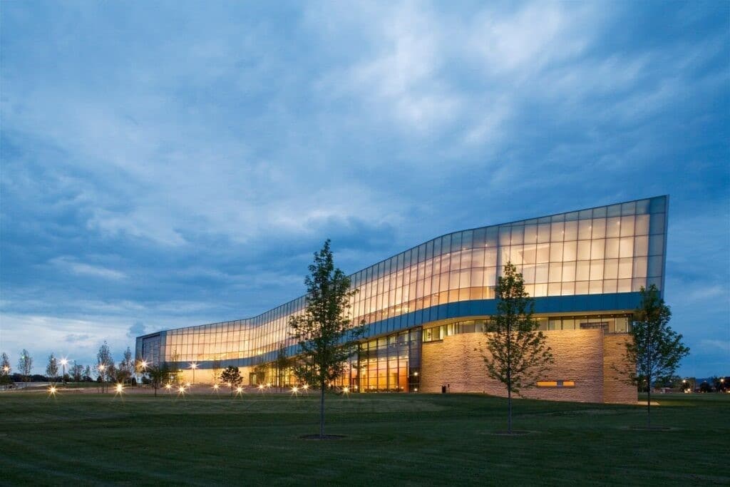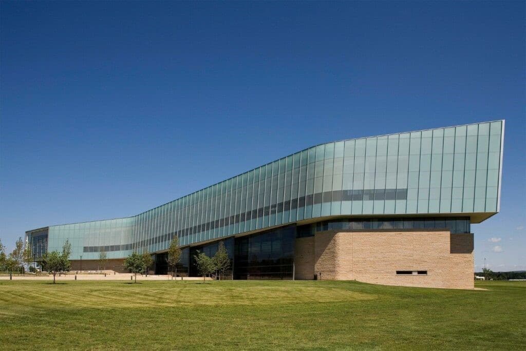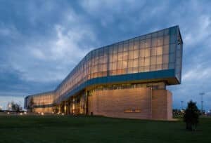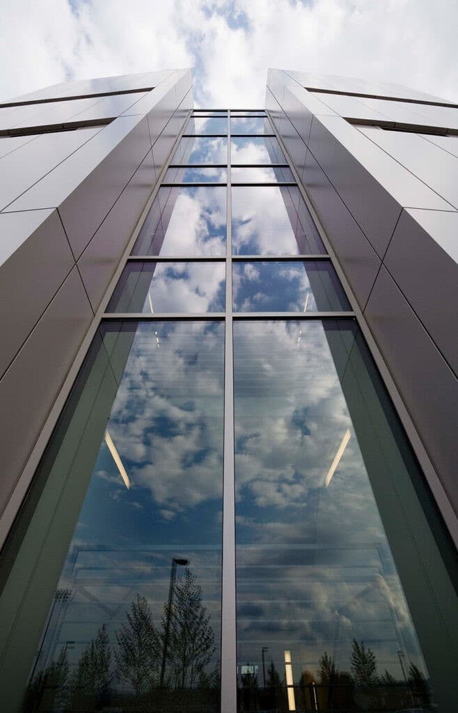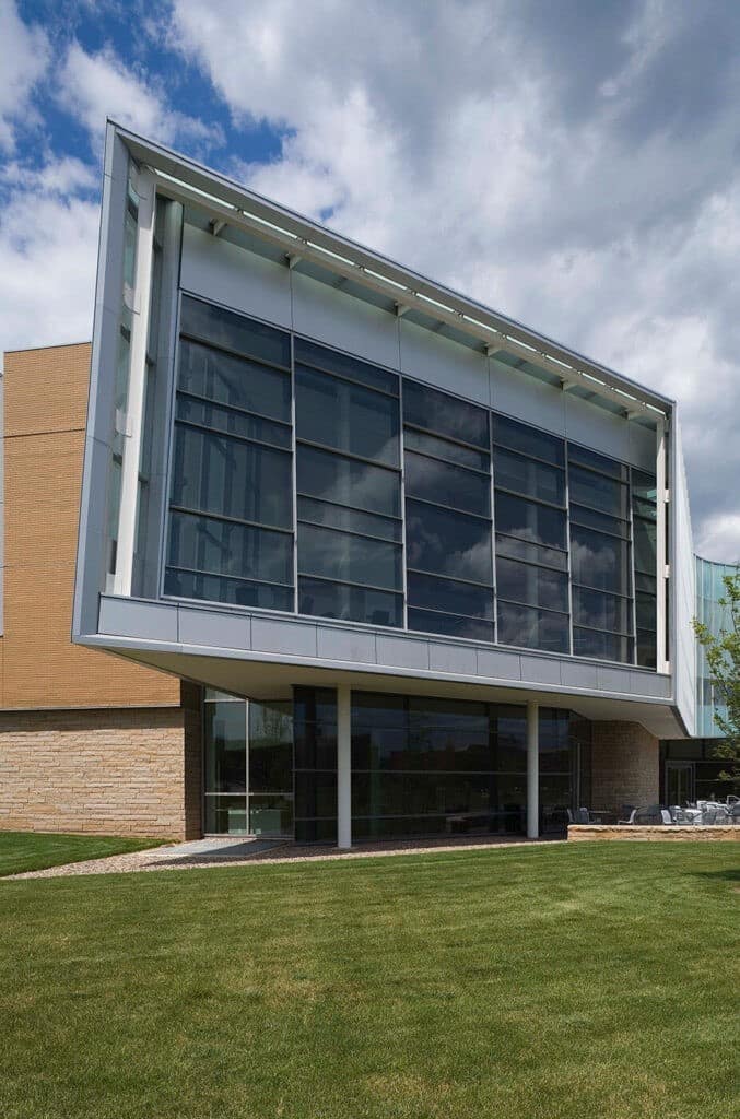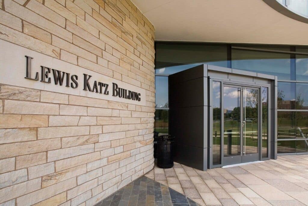 Le bâtiment Lewis Katz crée une passerelle vers l’université et une nouvelle identité. Le bâtiment de 112 000 pieds carrés est entouré de montagnes et chacune des deux extrémités du bâtiment est orientée vers un paysage. Des systèmes de mur-rideau performants ont été utilisés pour créer une façade vitrée en serpentin. Les entrées standard Kawneer 190, avec leurs lignes épurées et leur nature robuste, résistent aux rigueurs d’une utilisation constante par les étudiants et les visiteurs.