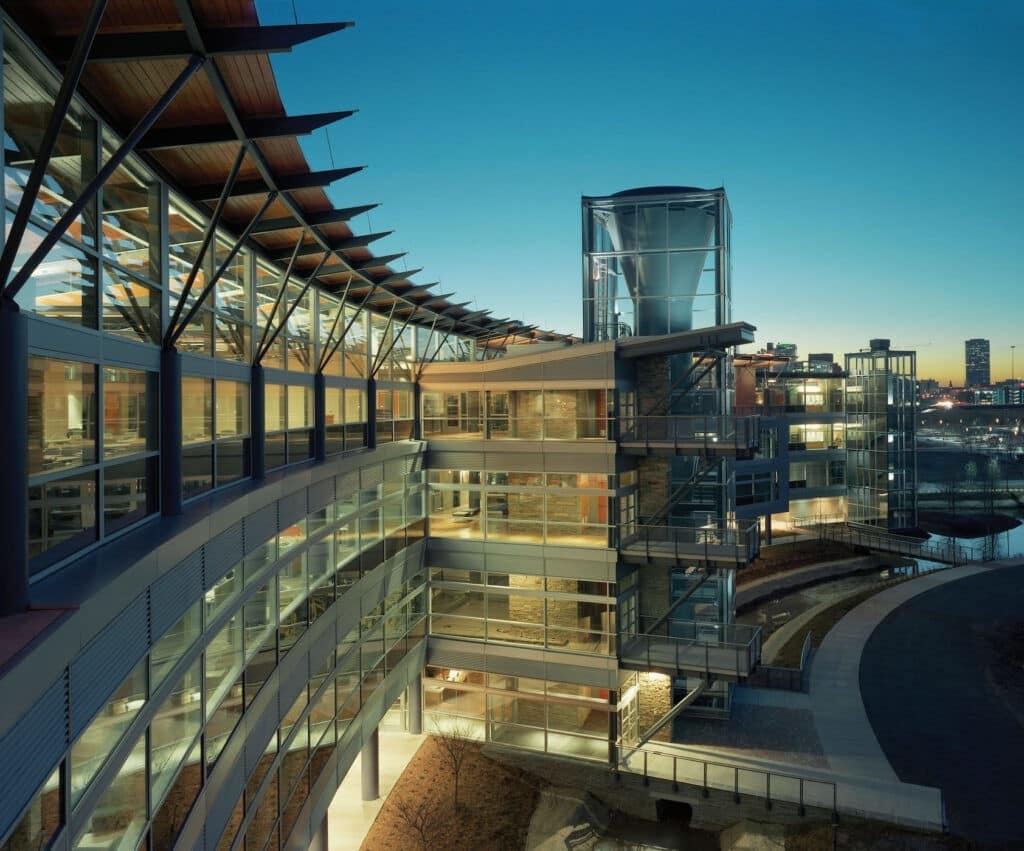 Heifer International avait besoin d’un siège social plus grand et voulait que le projet minimise l’utilisation des ressources de la terre. La conception du bâtiment a saisi toutes les occasions d’obtenir la certification LEED et reflétait sa mission globale. La combinaison de la plaque de plancher étroite du bâtiment et du mur rideau permet à la lumière naturelle de pénétrer au centre de chaque étage, tandis que le vitrage intérieur stratégique prolonge l’esthétique intérieure/extérieure et garde les bureaux individuels lumineux et ouverts.