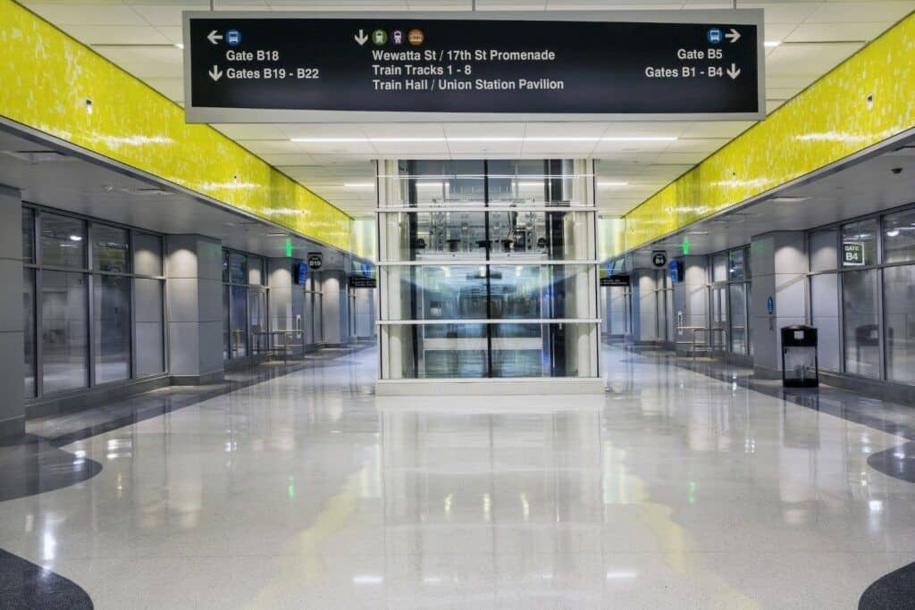 La gare Union Station de Denver se compose d’un terminal historique, d’un hall de train en plein air, d’un terminal de bus souterrain à 22 portes et d’une station de métro léger. Sa rénovation visait à remodeler la façon dont les habitants de Denver profitent du centre-ville, s’y déplacent et y travaillent. Cependant, la restauration devait également préserver son importance historique. De nombreux détails d’origine du bâtiment ont été recréés, revitalisés et modernisés pour servir ses objectifs actuels.
