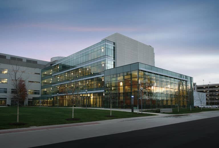 Situés sur le campus du centre médical de l’université Loyola, l’école de soins infirmiers Marcella Niehoff et le centre d’apprentissage coopératif constituent un modèle innovant d’enseignement médical. La conception crée un environnement d’apprentissage unique et collaboratif où les étudiants travaillent ensemble en tant qu’équipe médicale, simulant des situations réelles. Le centre est un campus durable et économe, et les conceptions innovantes permettent de conserver l’énergie et les ressources Le système de mur-rideau 2500 PG Wall® de Kawneer a été utilisé pour sa flexibilité; les entrées Insulclad® 360 optimisent l’efficacité thermique de l’ensemble de la façade du bâtiment; des pare-soleil Versoleil® extérieurs personnalisés ombragent le mur sud et un système d’ombrage extérieur opérable sur le mur ouest permet de contrôler les gains de chaleur.