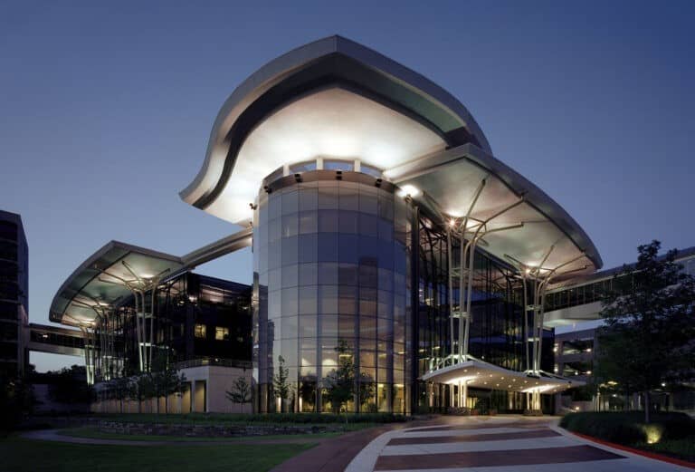 Le nouveau campus Warren Medical Office combine les styles anciens et nouveaux de l’architecture des soins de santé. Le bâtiment Natalie s’inspire des courbes et des formes des bâtiments Art déco de Tulsa. Doté du mur-rideau, des systèmes de cadre et des fenêtres thermiques de Kawneer, l’extérieur est enveloppé de verre de haute performance, créant une sensation d’ouverture, de transparence et d’accueil pour les patients.