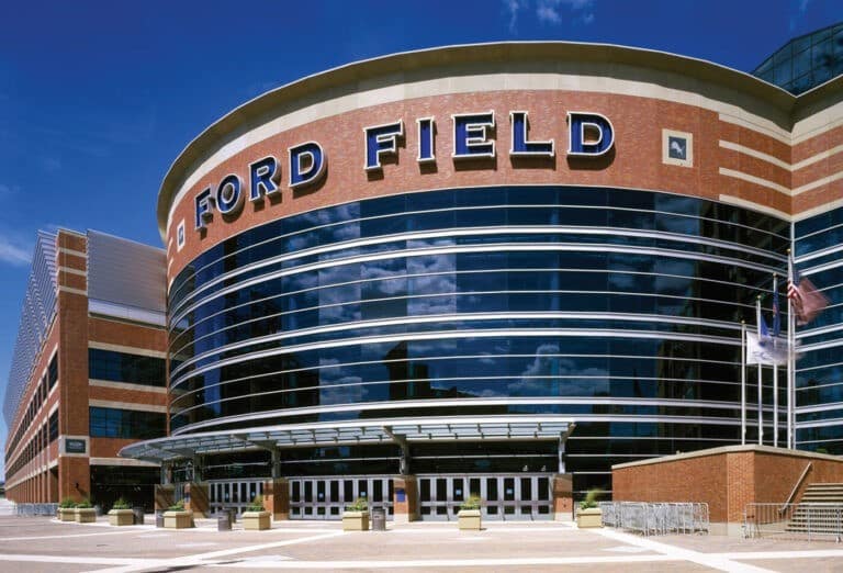 Le Ford Field est un stade unique. Il permet à une grande quantité de lumière naturelle d’entrer dans l’installation grâce à d’immenses puits de lumière et à de grandes baies vitrées dans les coins ouverts. Les fenêtres le long du plafond sont dépolies pour imiter les usines automobiles dominantes à Détroit. La tribune et le hall reçoivent la lumière du soleil toute l’année et offrent aux amateurs une vue sur le centre-ville.