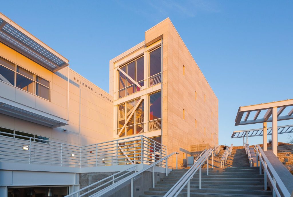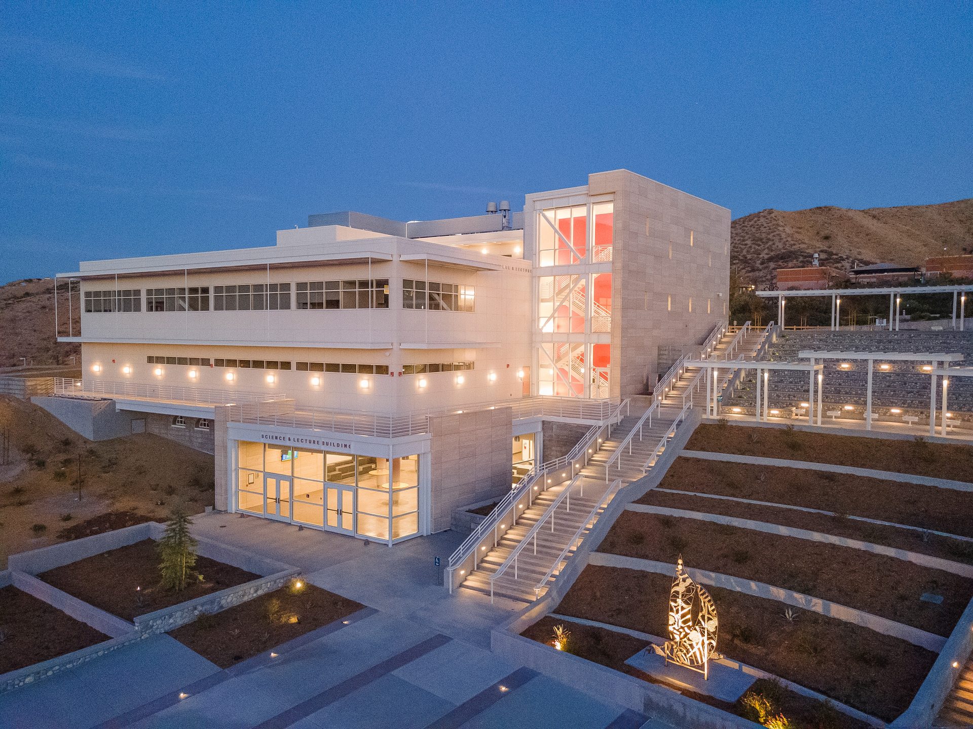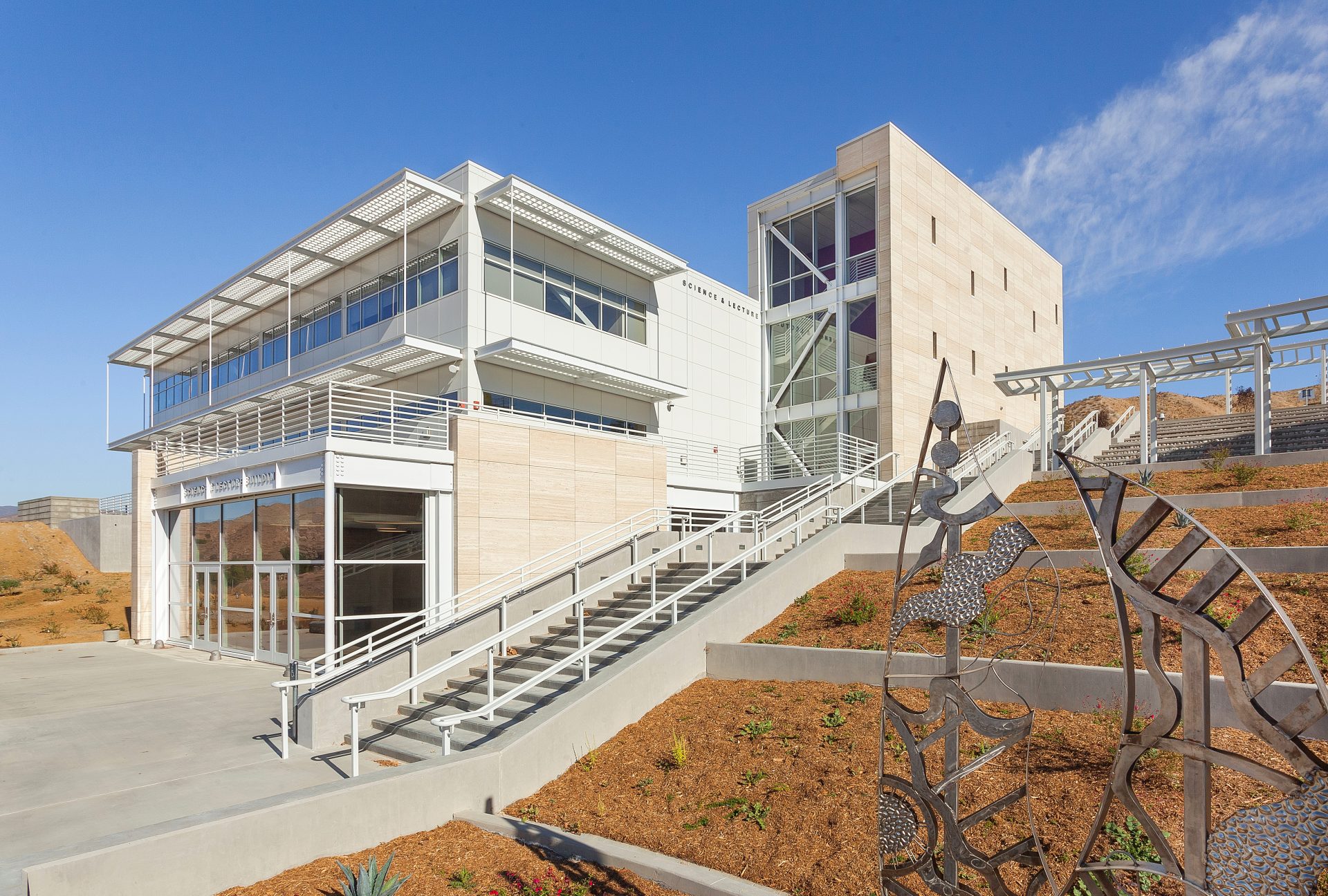 The four-story Don Takeda Science Center is a 55,000-square-foot building at College of the Canyons that features a two-story laboratory, three floors of classrooms and a student resource center. The building has four biology labs, three chemistry labs and a physics lab all offering teaching and learning spaces for students and faculty. The science center also houses three computer labs, study rooms, seven lecture halls and state of the art technology to help advance learning for the next generation.