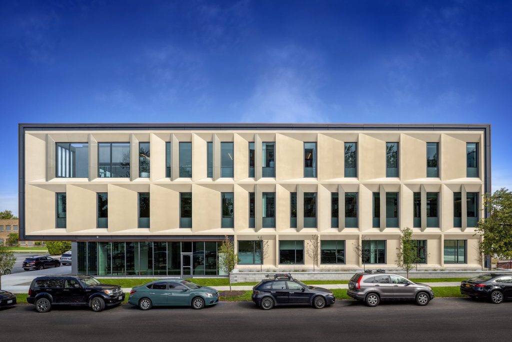 The D’Youville University Health Professions Hub’s exterior and interior features play a major part in the education and training of aspiring healthcare professionals. The Hub offers accessible quality medical care for the residents of the surrounding neighborhoods through an on-site clinic and street-facing pharmacy.