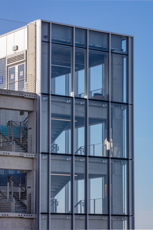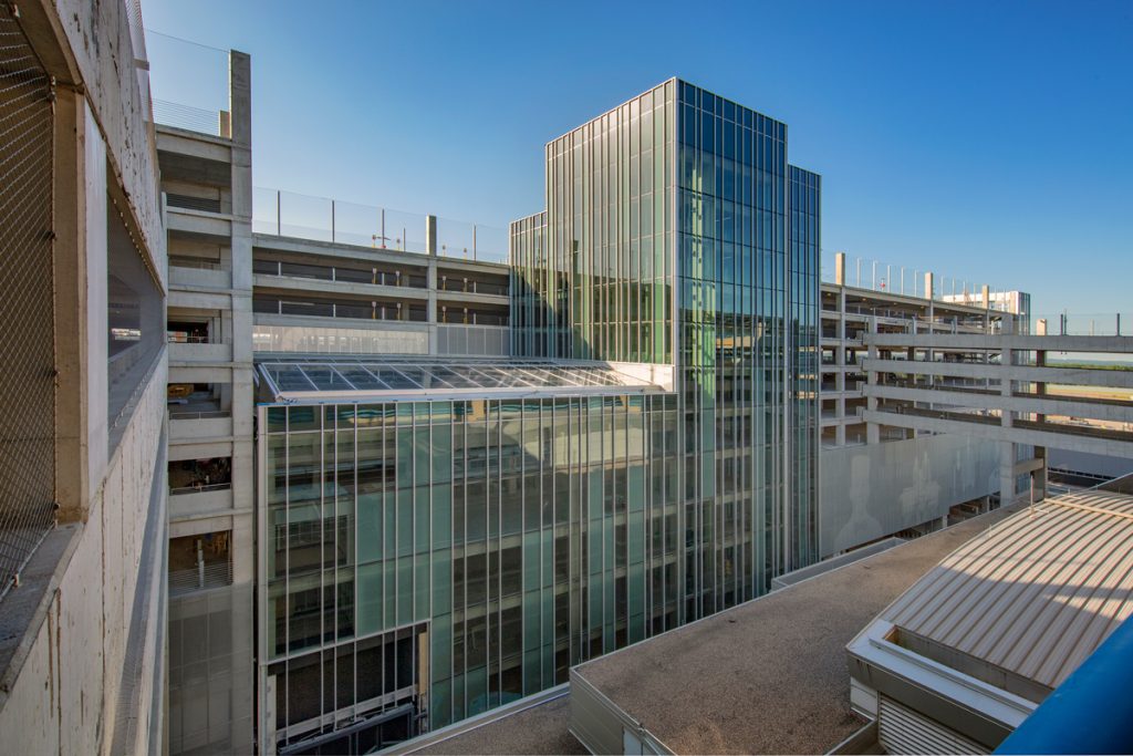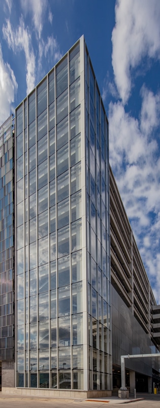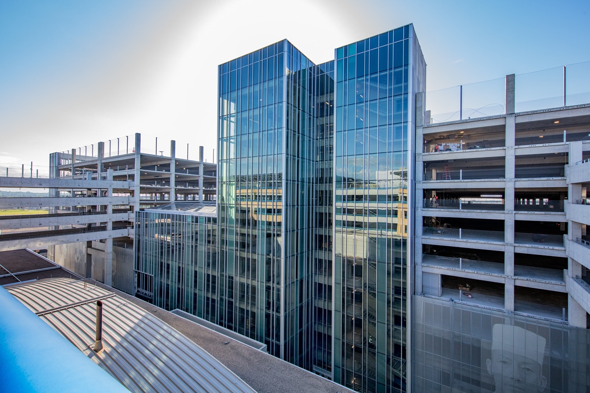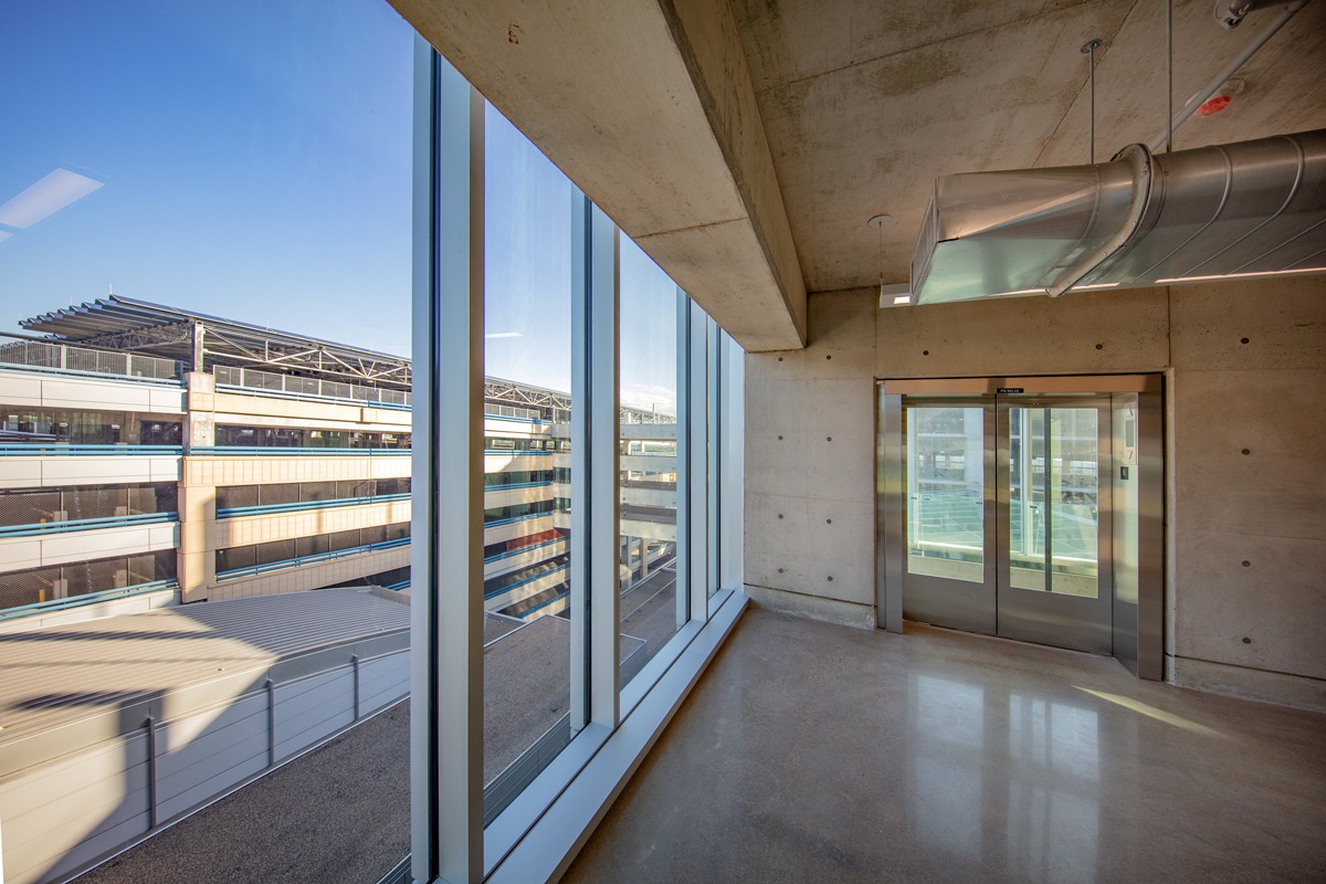 The Silver Ramp Transit Center Terminal 1 Lindbergh parking expansion at Minneapolis–St. Paul International Airport provides 5,000 parking spots and four stories dedicated to rental car companies allowing for short- and long-term expansion of rental car operations. Glass enclosed elevator shafts and strategic floor openings bring daylight into the underground passageways where connections are made to the people mover and LRT station. Lower-level spaces are flooded with natural daylight through Kawneer’s 2500 UT Unitwall® System and 1600UT Wall System®1 Curtain Wall. Additional systems used include 1600 Wall System®1 Curtain Wall, Trifab® VersaGlaze® 451 Framing System and 500 Standard Entrances. The systems provided a thermally efficient barrier between interior and exterior temperatures in the cool Minnesota climate. Kawneer Collaborative worked closely with the architects, customers and builders to help bring the project to life.