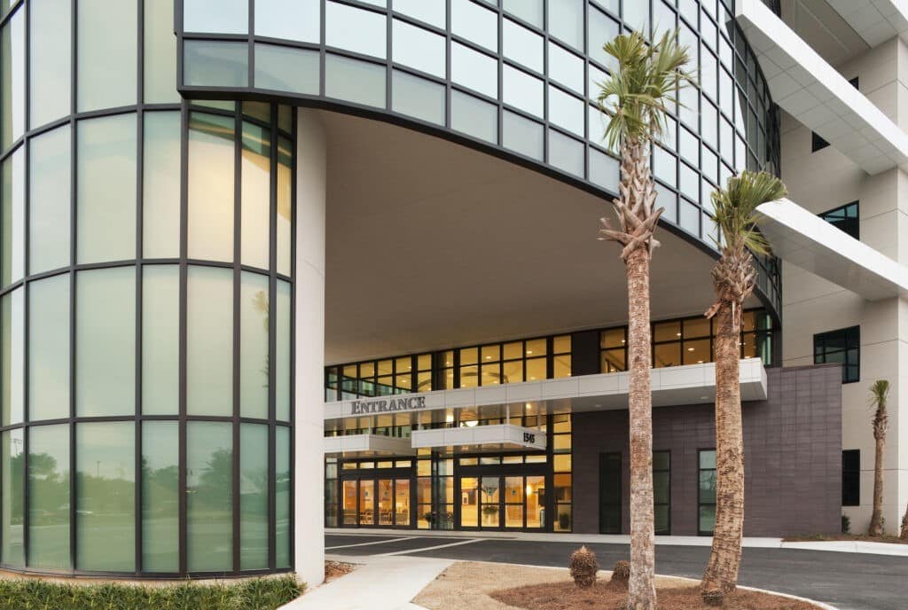 The Cancer Center of Sacred Heart Hospital is a symbol of the quality and compassion the Center brings to patients. Kawneer was brought in to supply curtain walls, storefront framing and entrances for the facility as well as architectural and engineering expertise. The successful construction of the Center can be attributed to teamwork and collaboration, matching the similar unwavering commitment of the hospital to providing quality care for patients.