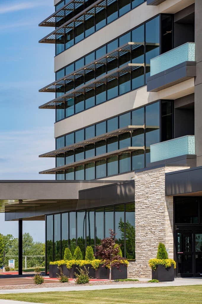 The five-story Highlands Oncology building houses multiple disciplines and services required by cancer patients. Occupant comfort and well-being were primary considerations of the clinic, which offers access to the most up-to-date treatment technology. The 1600 Wall System®1 Curtain Wall provides an abundance of natural light and expansive views while Versoleil® SunShades maintain thermal efficiency.