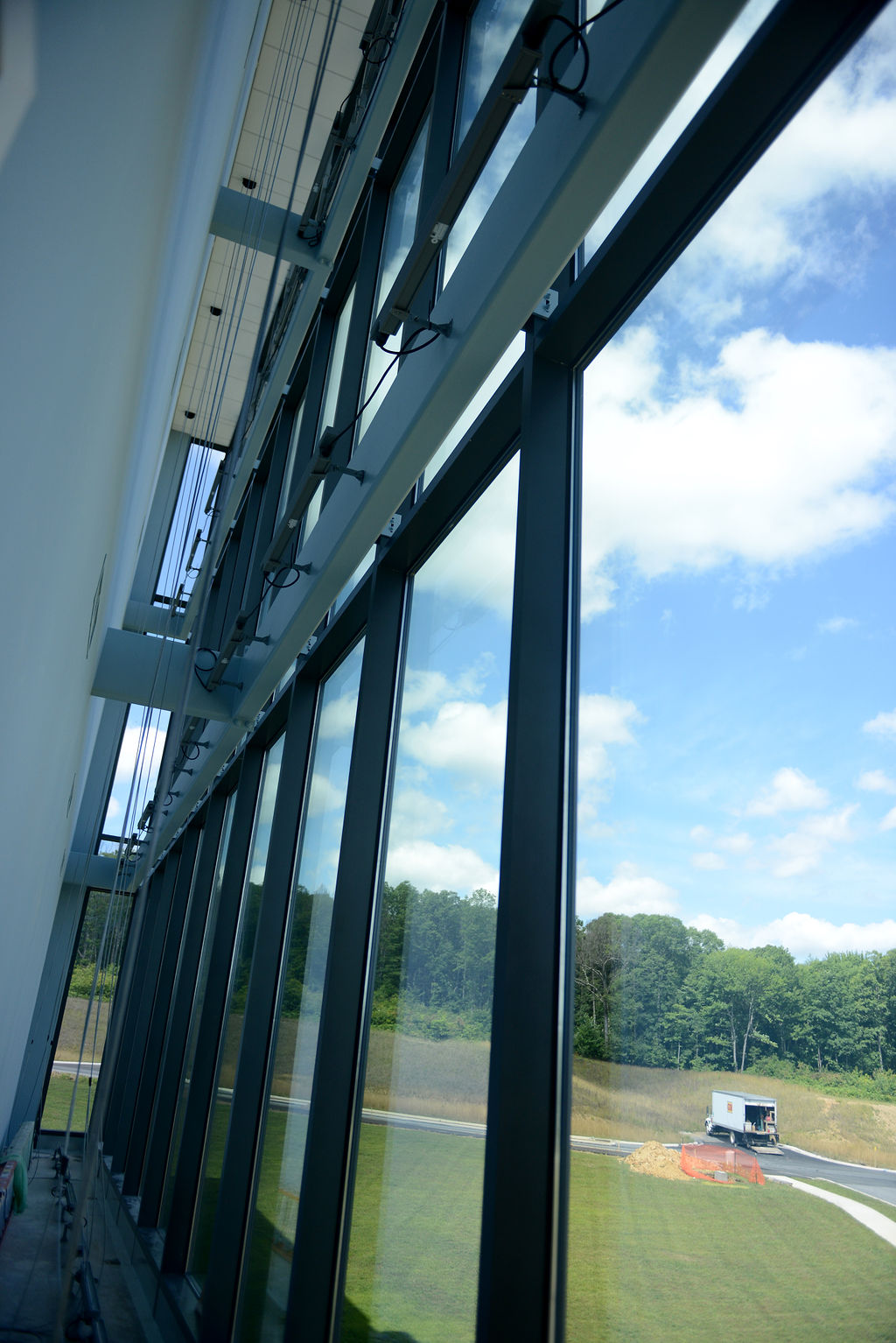 A variety of Kawneer’s solutions were specified for the project, including our 1600UT System™1 Curtain Wall, Trifab® VersaGlaze® 601UT Framing System and 350 Medium Stile Entrances. Our 1600UT System™1 Curtain Wall helps deliver ultra-thermal performance, versatility and reliability for the project, utilizing thermal barrier technology to address the extreme climactic conditions found in the project’s region. Further, our Trifab® VersaGlaze® 601UT Framing System, with its dual thermal break, provides increased performance and value to the project. Our 350 Medium Stile Entrances provide extra strength for high-traffic applications, including those often found in healthcare facilities.