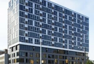 A reflection of the city’s rich history, 20 Fulton Street East is a 12-story mixed-use development. The 190,000-square-foot structure includes 13,000 square feet of retail/commercial space. The residential entrance opens into a double-height lobby. With an assortment of complimentary black and sterling grey painted Kawneer window systems and entrances, the building is inviting to both consumers and residents. In addition, the project has earned LEED Silver®.