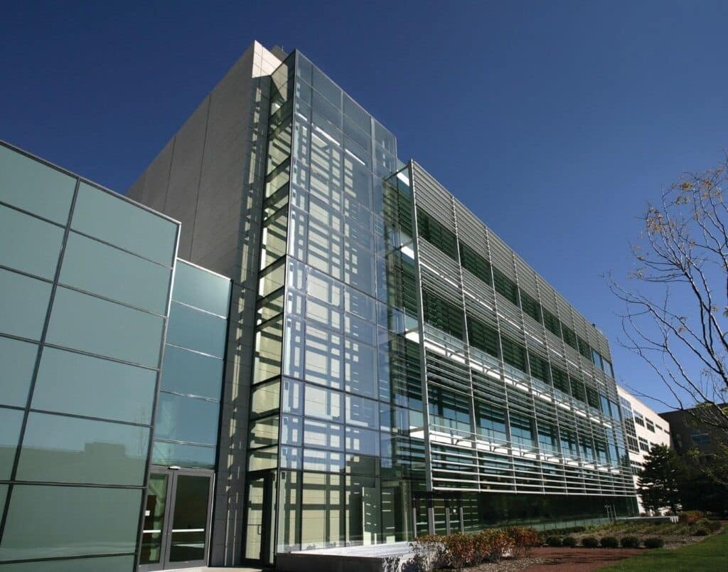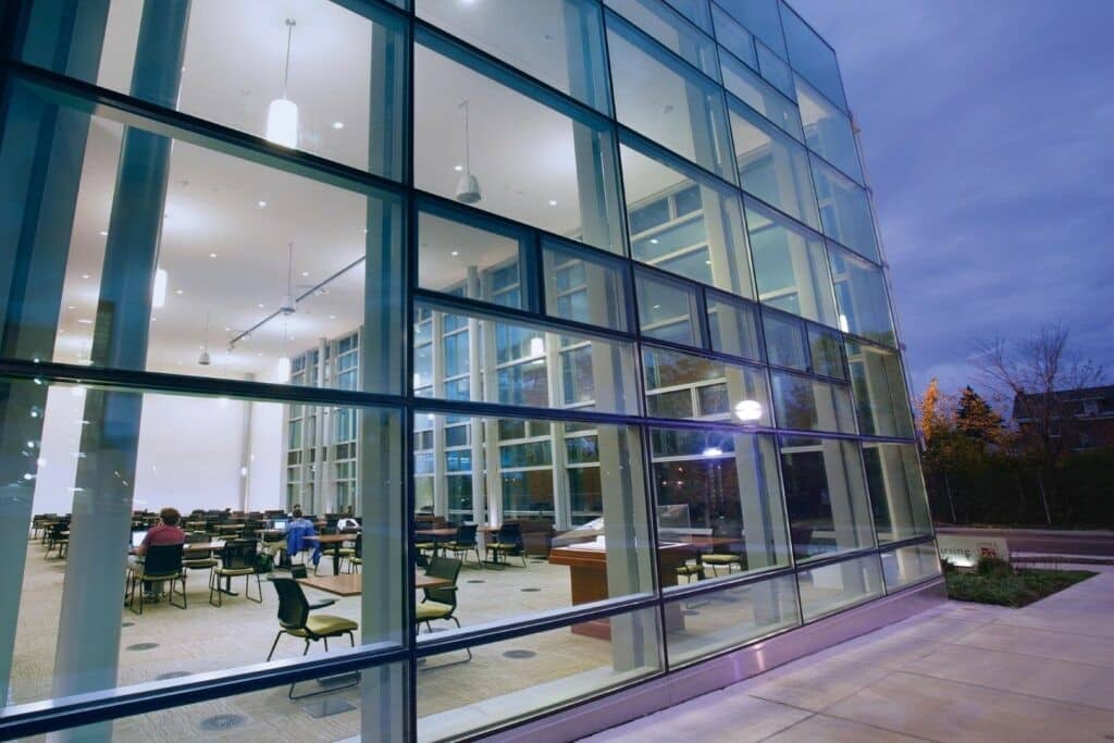 Located on Loyola University’s Medical Center Campus, the Marcella Niehoff School of Nursing and Center for Collaborative Learning is an innovative model in medical education. The design creates a unique and collaborative learning environment where students work together as a medical team, simulating real-world situations. The center is a sustainable and cost-conscious campus, and innovative designs conserve energy and resources. Kawneer’s 2500 PG Wall® Curtain Wall System is used for its flexibility; 360 Insulclad® Entrances optimize thermal efficiency for the entire building façade; external custom Versoleil® Sunshades shade the south wall and an operable, external shading system on the west wall helps control heat gain.