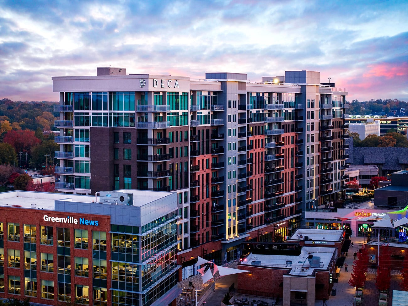 DECA at Camperdown takes apartment living to greater heights. The 10-story high-rise apartment community, located in the heart of Downtown Greenville, South Carolina, features luxurious 10′ ceilings as well as Kawneer’s 2000T Terrace Doors leading to balconies that provide residents with unparalleled views of the city’s skyline.