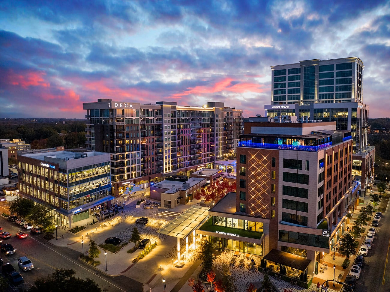 Camperdown is a true live-work-play destination based in Greenville, South Carolina, that features office and retail spaces, condominiums, a 600+ space parking deck and an upscale hotel, all surrounding a central plaza.