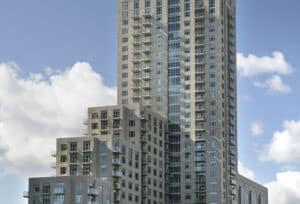 The Admiral at the Lake features garden and rooftop terraces, restaurant-style dining and a vast range of activities. Because the facility was being designed for senior living, entrances and other products in the building needed to be easy to operate. The Admiral at the Lake is an upgrade to retirement living with sleek and streamlined appearances while accommodating elderly residents, their continued care and operational needs.